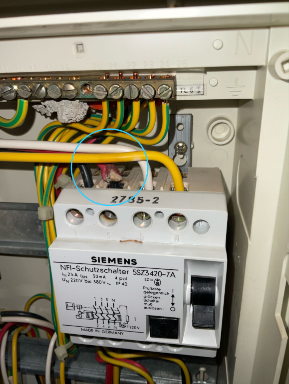 Folge:Durch den fehlenden richtigen Kontakt entsteht Wärme, welche die Isolation zum Schmelzen bringt.