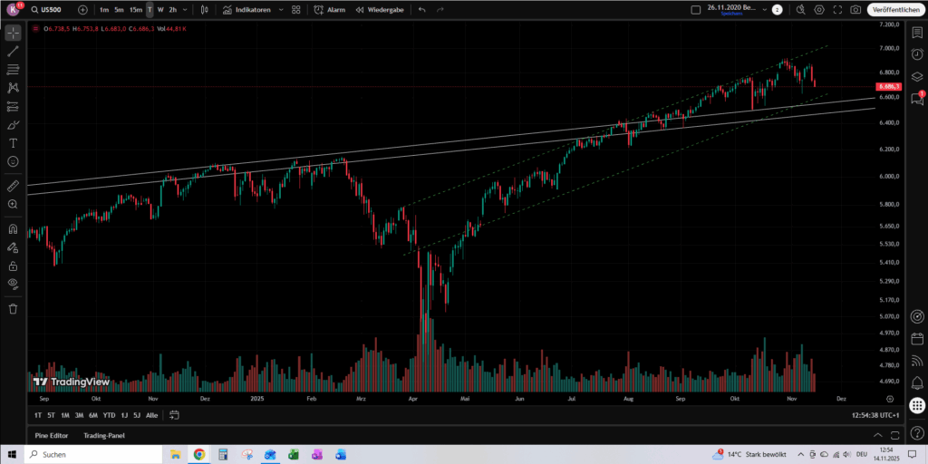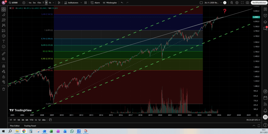 Hier oben haben wir den Wochenchart des S&P 500. Meiner Meinung nach: